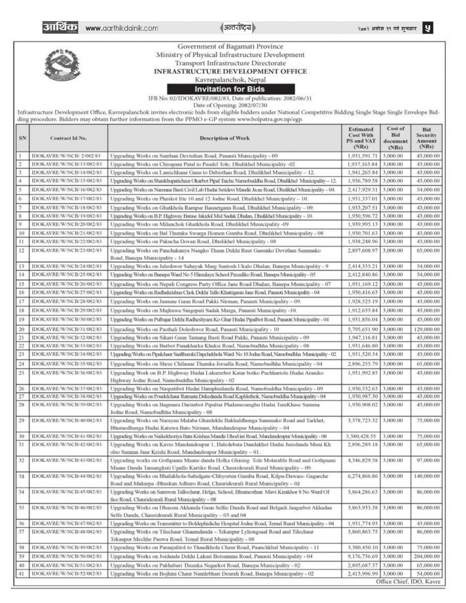 ठेक्का आव्हानको सुचना (12-52/IDOKAVRE/082/83)